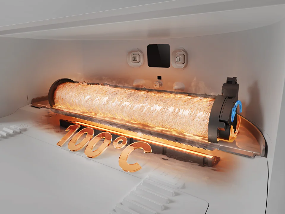 Наслаждайтесь удобством автоматической заправки, опустошения, сушки и очистки роликовой щетки при температуре 100 °C с помощью системы ThermoHub™.