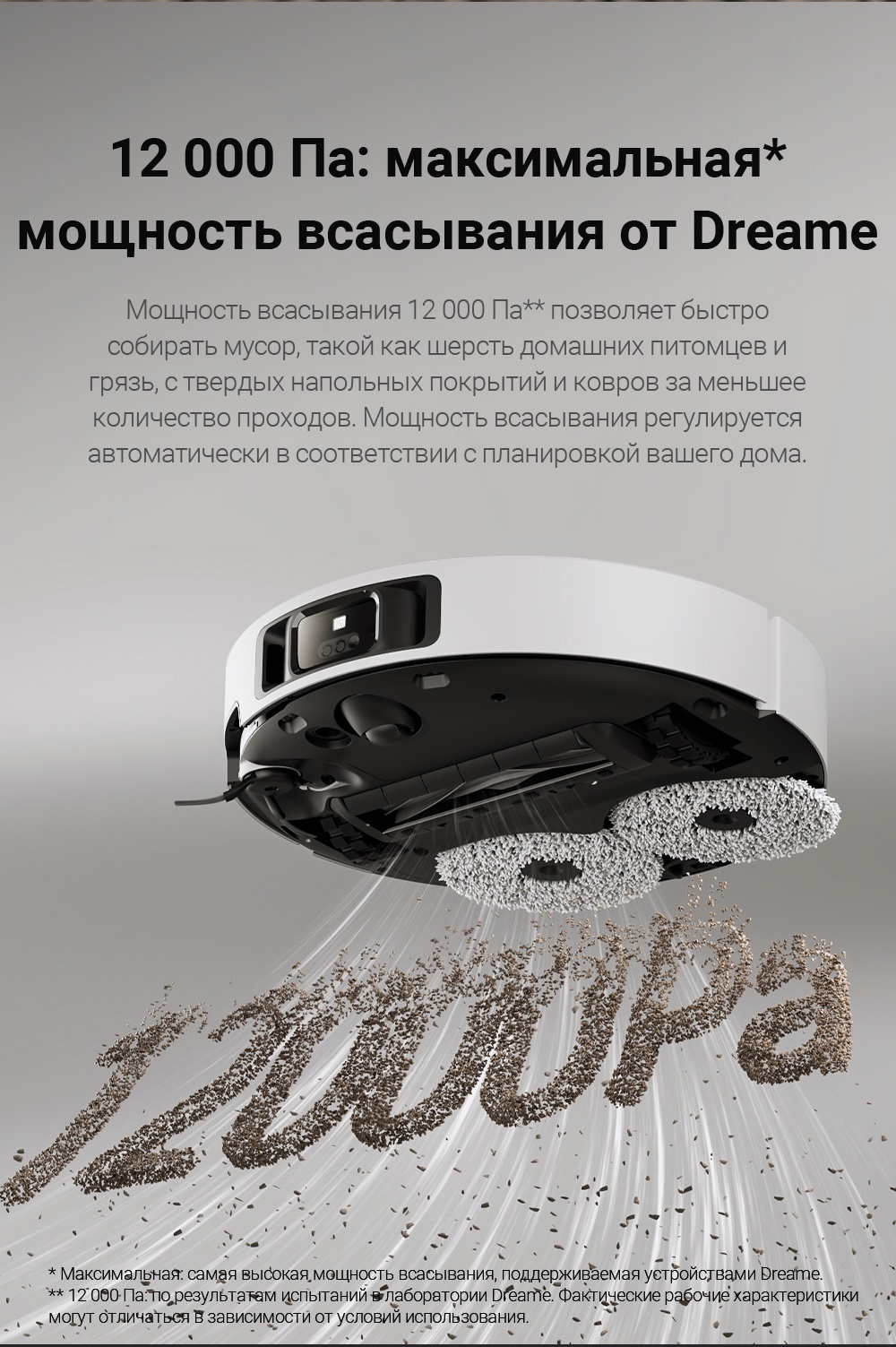 Мощность всасывания 12 000 Па** позволяет быстро удалять